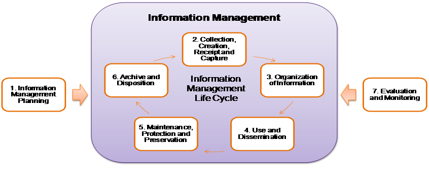 The information management life cycle can be illustrated in the following diagram:
